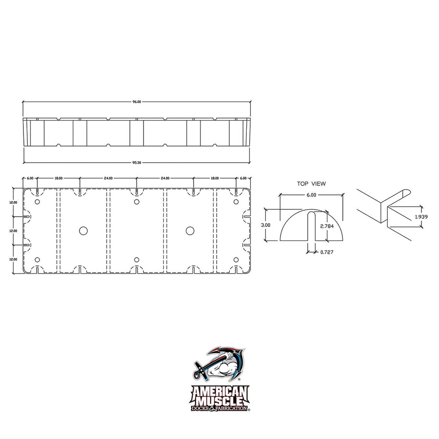 Standard attachment: Our standard float drums feature molded-in mount slots for a secure attachment to your dock structure. Fasten with carriage bolts.