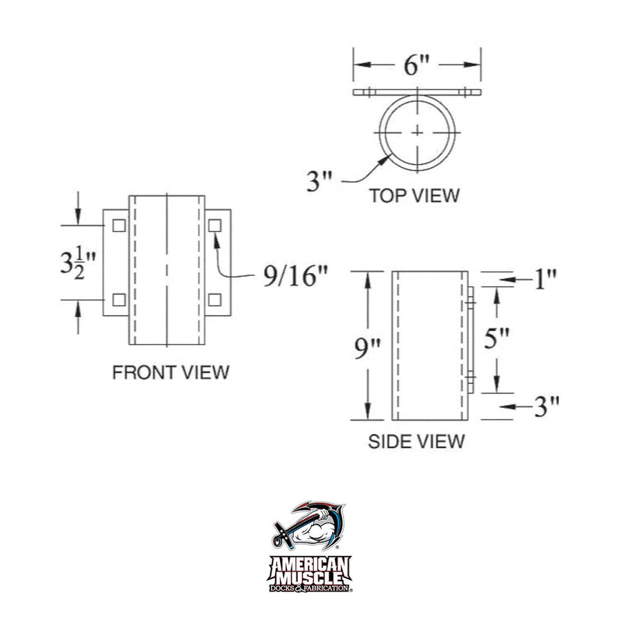Our heavy-duty 3-inch pipe holder provides a stable and reliable mounting point for anchoring your residential dock or creating sturdy support structures. Designed to accommodate either 1-1/2 inch or 2-inch diameter pipe.