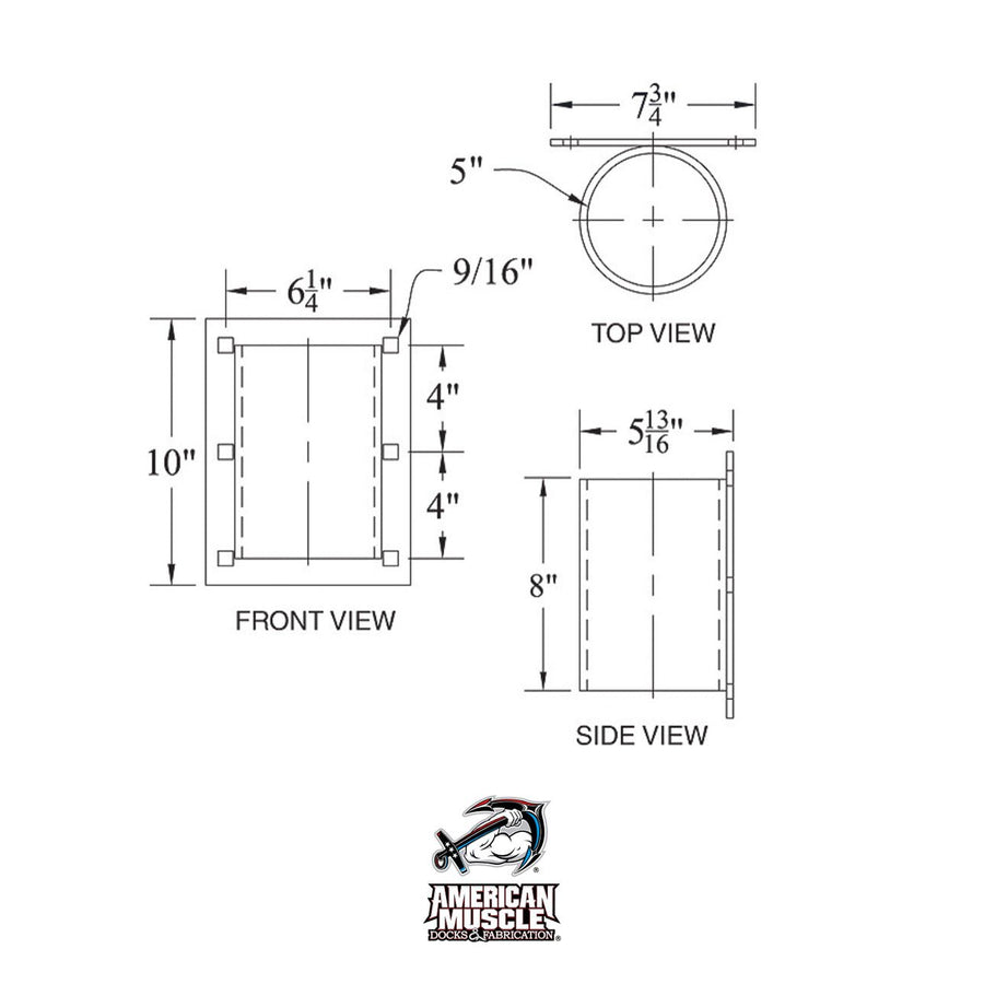 Our 5-inch pipe holder is engineered to provide a strong and stable foundation for larger dock support systems utilizing pipe with an Outer Diameter (O.D.) ranging from 3 to 4 inches. This robust holder ensures a secure connection for your main support structures.
