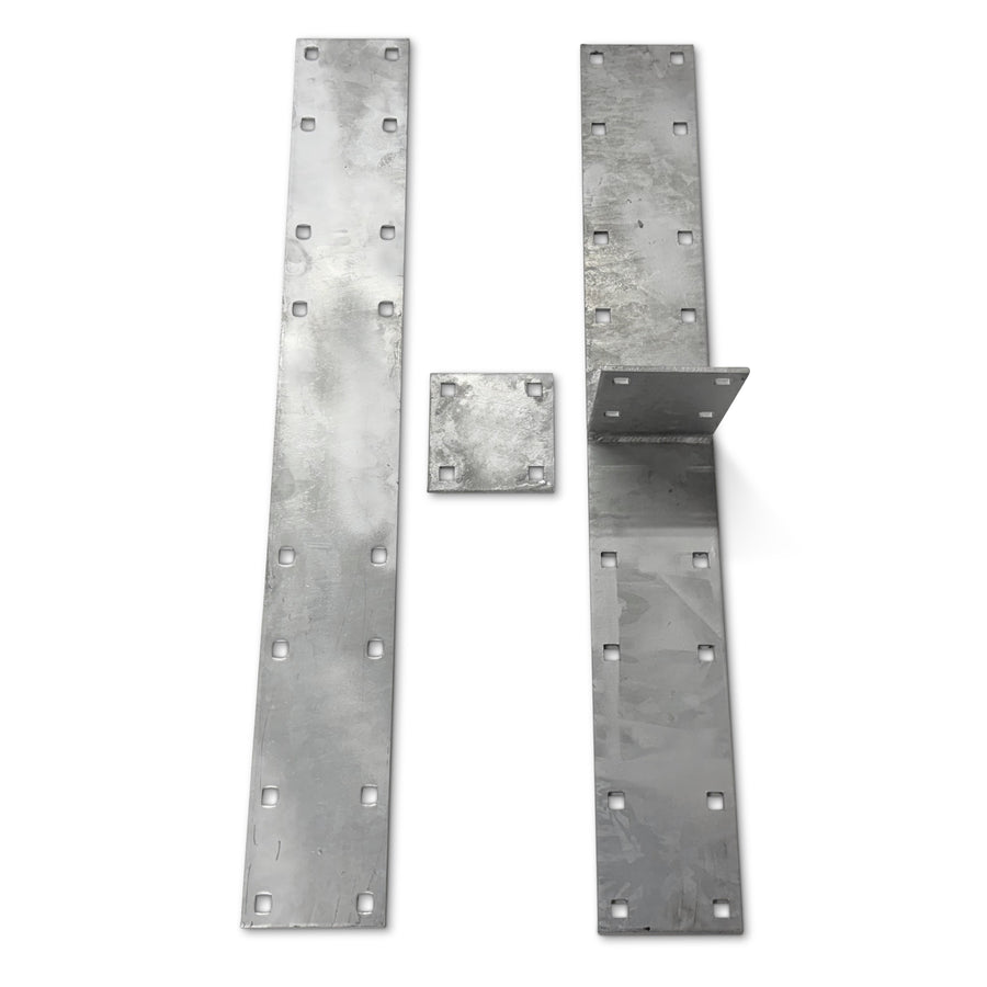 Splice Plates are designed to join two side stringers together to make longer dock sections. The flat plate is used on the outside of the stringer, and the T plate is used on the inside of the stringer. The T plate will attach to the cross stringer as shown. Set includes a flat plate and a T plate.