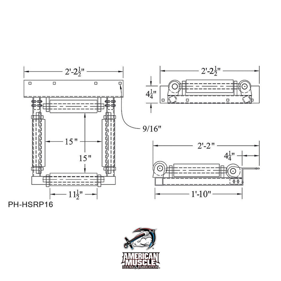Protect your boat and dock pilings with our external square hoop pile guide, equipped with four non-marking poly rollers for effortless movement. Choose between the 14-inch model (ideal for 12" pilings) and the 16-inch model (perfect for 14" pilings). Built for durability and easy installation on your boat dock.