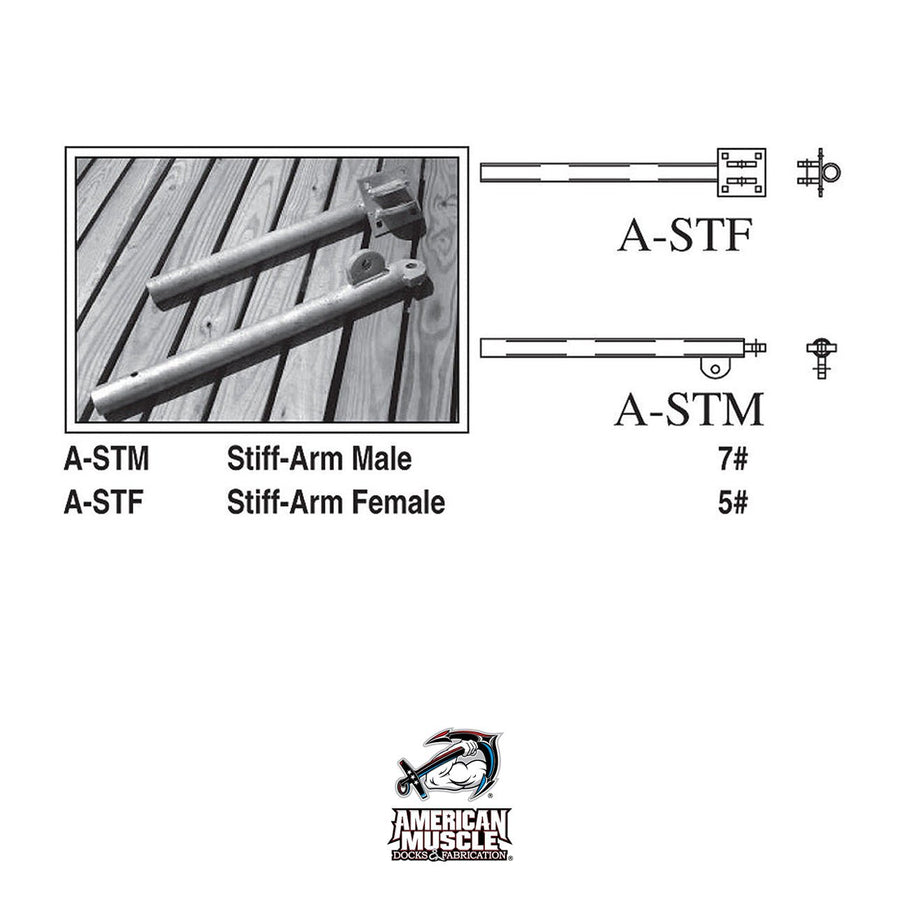 Build your own robust dock stiff arm system using our durable fittings for 2-inch pipe. This cost-effective solution replaces expensive piling. Our WD-STM (Male) and WD-STF (Female) fittings each securely thru-bolt onto standard 2-inch pipe. The WD-STM connects to the pipe extending from your dock, while the WD-STF anchors to a 2-inch pipe driven into the ground on shore. Integrated tabs are included for easy cable securing. Pipe and cable are not included but are available upon request.