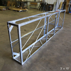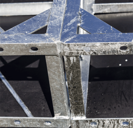 Engineered for exceptional strength and longevity, American Muscle Docks steel truss frames are constructed from sturdy 1.5" x 1.5" x 3/16" steel angle, strategically separated by 1/2" diagonal round bar to create a highly rigid box frame structure. For added reinforcement, corner gussets are incorporated at all four top corners.